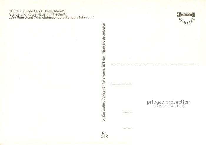 73711665 TRIER CITY Steipe und Rotes Haus mit Inschrift postalisch nicht gelaufen Erhaltung siehe scans [WerneD78] Wern Katcode 11110007211000