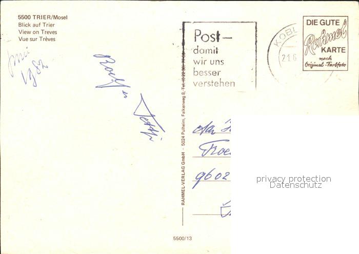 72504162 alte Postkarte TRIER CITY Teilansicht postalisch gelaufen Erhaltung siehe scans KatCode: 11110007211000