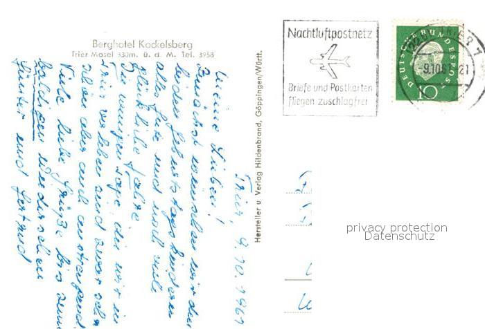 73174747 alte Postkarte Trier Fliegeraufnahme Berghotel Kockelsberg postalisch gelaufen Erhaltung siehe scans [NatalD47] KatCode: 11110007211000