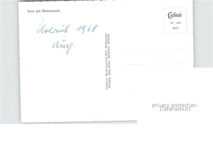 Trier Fliegeraufnahme mit Mariensaeule postalisch nicht gelaufen Erhaltung siehe scans