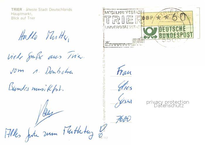 72900030 alte Postkarte Trier Hauptmarkt postalisch gelaufen Erhaltung siehe scans [NatalD47] KatCode: 11110007211000
