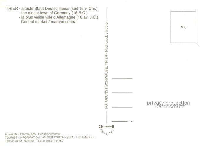 72898212 Trier Hauptmarkt postalisch nicht gelaufen Erhaltung siehe scans [KathaD81] KatCode: 11110007211000