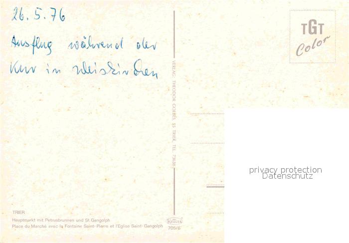 72904594 Trier Hauptmarkt mit Petrusbrunnen St Gangolph Kirche postalisch nicht gelaufen Erhaltung siehe scans [FriedD77] KatCode: 11110007211000