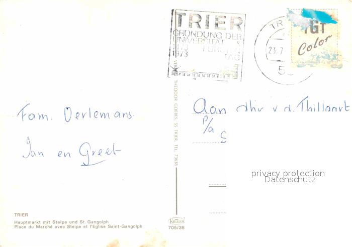 72870455 alte Postkarte Trier Hauptmarkt mit Steige und St. Gangolph postalisch gelaufen Erhaltung siehe scans [LiesaD40] KatCode: 11110007211000