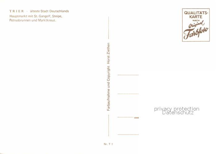 72899935 Trier Hauptmarkt St. Gangolf Steipe Petrusbrunnen Marktplatz postalisch nicht gelaufen Erhaltung siehe scans [NatalD47] KatCode: 11110007211000