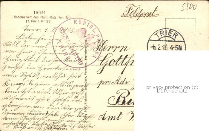 41511981 Trier Kasernement des Infant Regts von Horn Feldpost KatCode 11110007211000