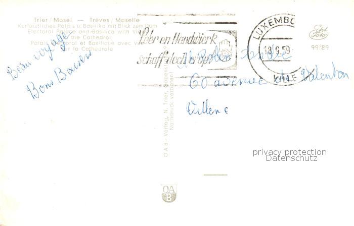 73044288 alte Postkarte Trier Kurfuerstliches Palais Basilika postalisch gelaufen Erhaltung siehe scans [KathaD81] KatCode: 11110007211000