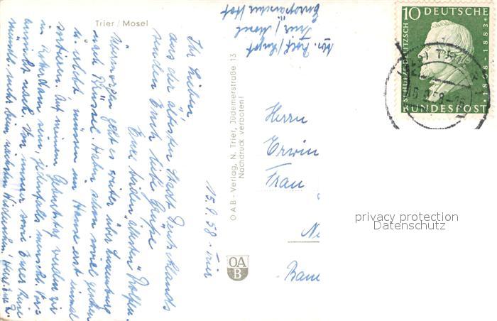 73611028 alte Postkarte Trier Moselpartie postalisch gelaufen Erhaltung siehe scans [LiesaD40] KatCode: 11110007211000