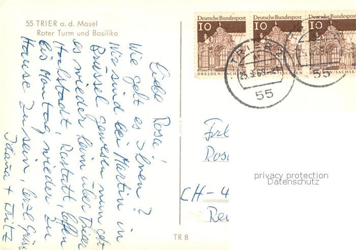 73335238 alte Postkarte Trier Roter Turm und Basilika postalisch gelaufen Erhaltung siehe scans [WerneD78] KatCode: 11110007211000