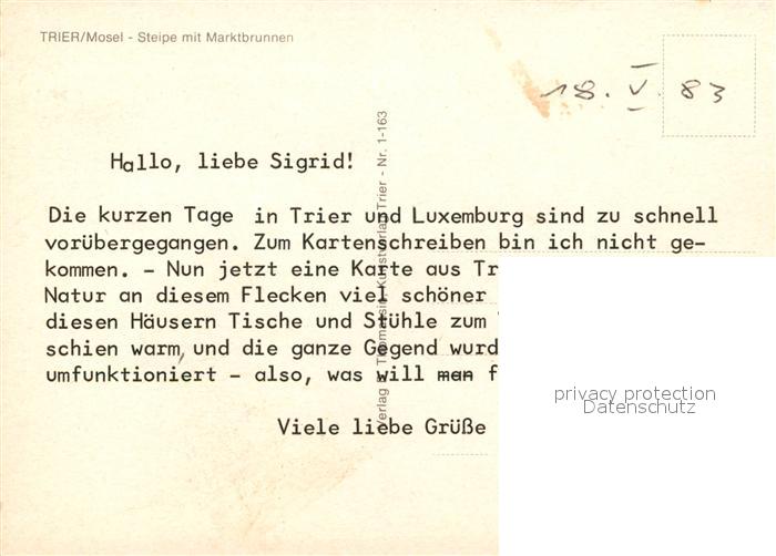 73606783 Trier Steipe mit Marktbrunnen postalisch nicht gelaufen Erhaltung siehe scans [LiesaD40] KatCode: 11110007211000