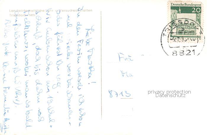 73830059 alte Postkarte Triesdorf Landwirtschaftliche Lehr- und Versuchsanstalten Schloss postalisch gelaufen Erhaltung siehe scans [FriedD77] KatCode: 11110009571216