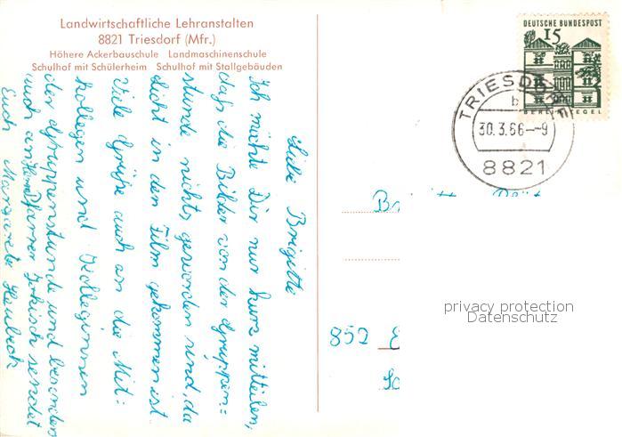 73835603 alte Postkarte Triesdorf Landwirtschaftliche Lehranstalten Hoehere Ackerbauschule Landmaschinenschule Schulhof Stallgebaeude postalisch gelaufen Erhaltung siehe scans [WerneD78] KatCode: 11110009571216