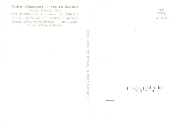 73777762 Triesdorf Tessiner Weinstuebchen Hotel zur Eisenbahn postalisch nicht gelaufen Erhaltung siehe scans [WerneD78] KatCode: 11110009571216