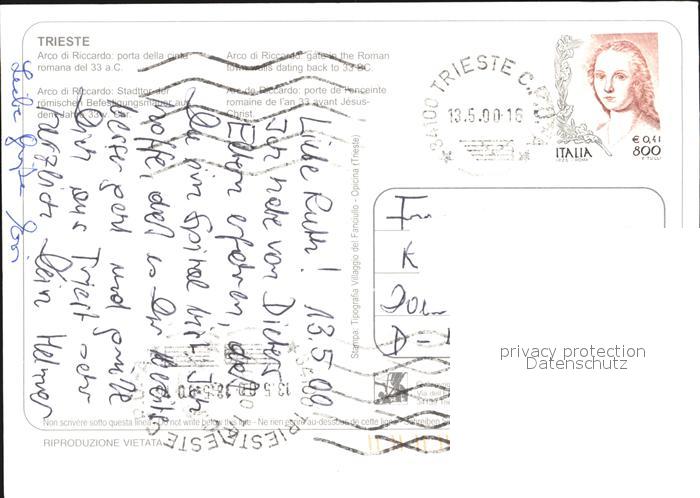 old postcard Trieste Arco di Riccardo postalisch gelaufen Erhaltung siehe scans