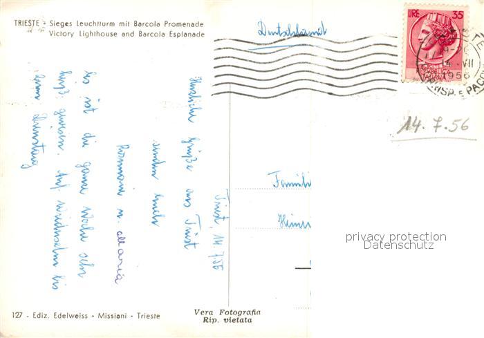 old postcard Trieste Faro della Vittoria e Riviera di Barcola Leuchtturm Kueste postalisch gelaufen Erhaltung siehe scans [FriedD77]