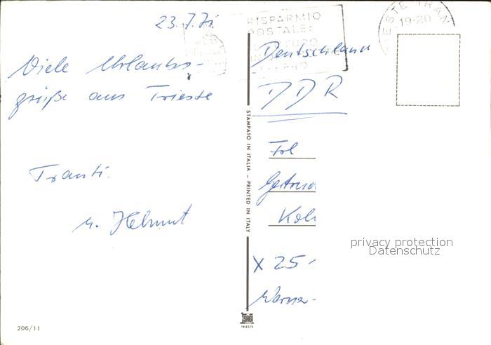 old postcard Trieste Muggia Sistiana Barcola Panorama Grignano Miramrare Colle Capitolio Faro della Vittoria Municipio Mon Caduti Canale S Antonio Castello Duino postalisch gelaufen Erhaltung siehe scans