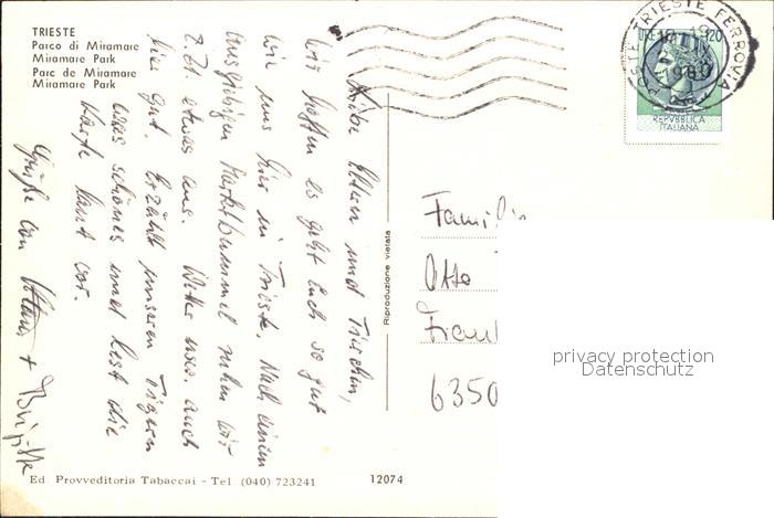 old postcard Trieste Parco di Miramare Miramare Park postalisch gelaufen Erhaltung siehe scans