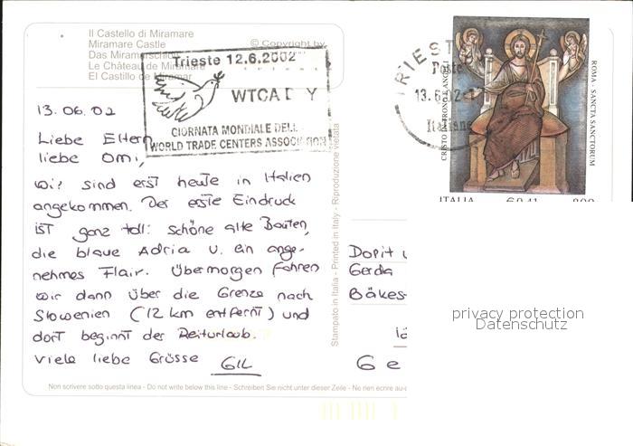 old postcard Trieste Schloss Miramare postalisch gelaufen Erhaltung siehe scans