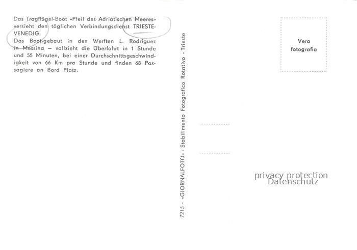 74154779 TRIESTE Triest IT Tragfluegel Boot Pfeil des Adriatischen Meeres postalisch nicht gelaufen Erhaltung siehe scans [WerneD78] KatCode: 11240