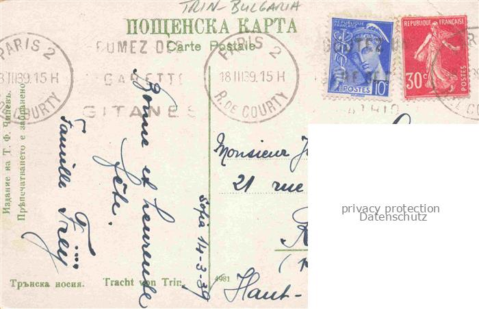 74046229 old postcard Trin Bulgarien Bulgaria BG Trachten postalisch gelaufen Erhaltung siehe scans [FriedD77] KatCode: 11090