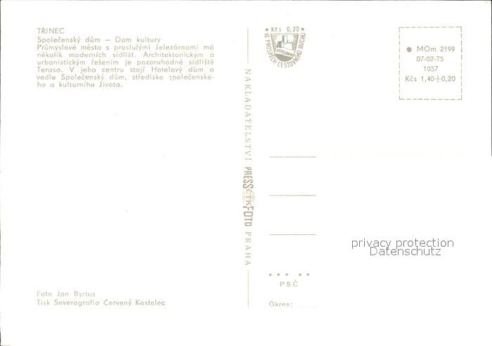 Trinec Spolecensky dum Dom kultury postalisch nicht gelaufen Erhaltung siehe scans