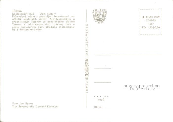 Trinec Spolecensky dum Dom kultury postalisch nicht gelaufen Erhaltung siehe scans