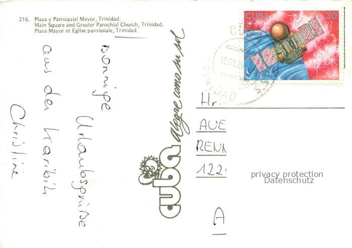 74096722 old postcard Trinidad Cuba Place Mayor et Eglise paroissiale postalisch gelaufen Erhaltung siehe scans [IrynaD87] KatCode: 16160