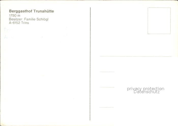 72448013 Trins Innsbruck Berggasthof Trunahuette postalisch nicht gelaufen Erhaltung siehe scans KatCode: 11390332070359