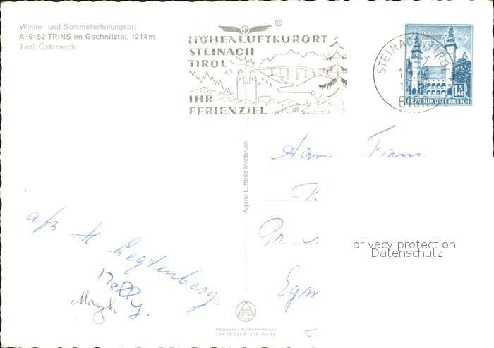 71993138 alte Postkarte Trins Innsbruck im Gschnitztal Fliegeraufnahme postalisch gelaufen Erhaltung siehe scans KatCode: 11390332070359