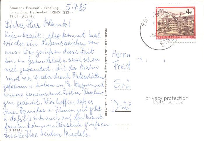 72467092 alte Postkarte Trins Innsbruck Ortspartie mit Kirche Alpenpanorama postalisch gelaufen Erhaltung siehe scans KatCode: 11390332070359