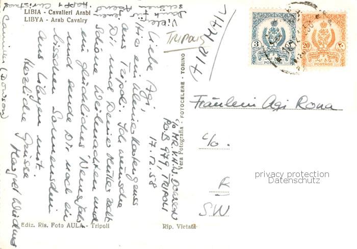 73831838 old postcard Tripolis Tripoli Lybia Arab Cavalry postalisch gelaufen Erhaltung siehe scans [FriedD77] KatCode: 18260