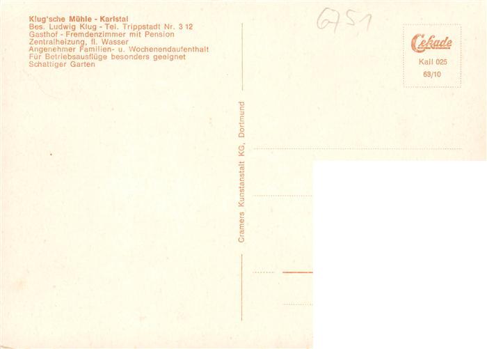 73905781 Trippstadt Gasthof Klugsche Muehle Gastraeume postalisch nicht gelaufen Erhaltung siehe scans [FriedD77] KatCode: 11110007335047