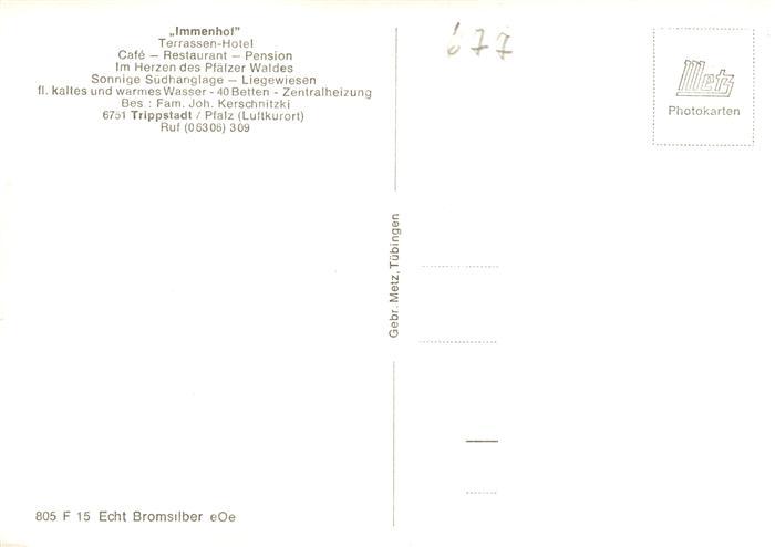 73872672 Trippstadt Terassen-Hotel Immenhof im Pfaelzer Wald Bromsilber postalisch nicht gelaufen Erhaltung siehe scans [FriedD77] KatCode: 11110007335047