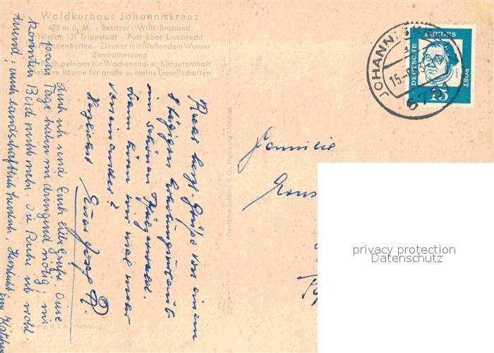72743084 alte Postkarte Trippstadt Waldkurhaus Johanniskreuz Fliegeraufnahme postalisch gelaufen Erhaltung siehe scans [FriedD77] KatCode: 11110007335047