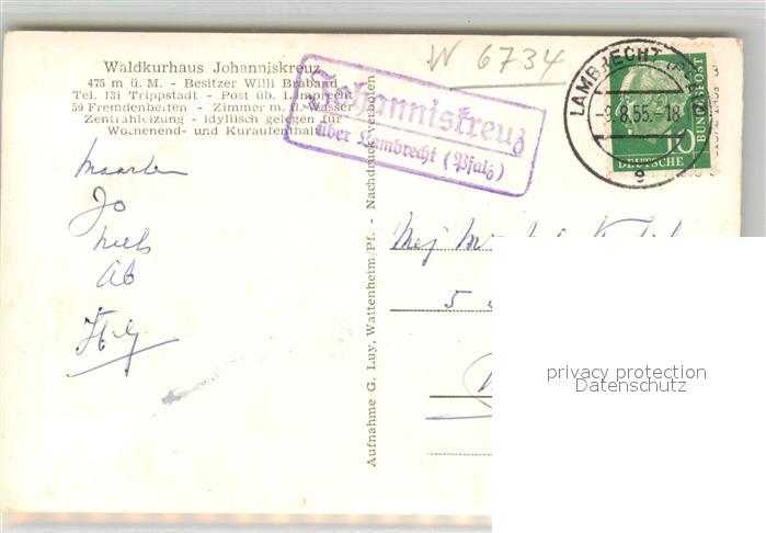 43302676 alte Postkarte Trippstadt Waldkurhaus Johanniskreuz mit Kaiser Wilhelm Buche postalisch gelaufen Erhaltung siehe scans [WerneD78] KatCode: 11110007335047