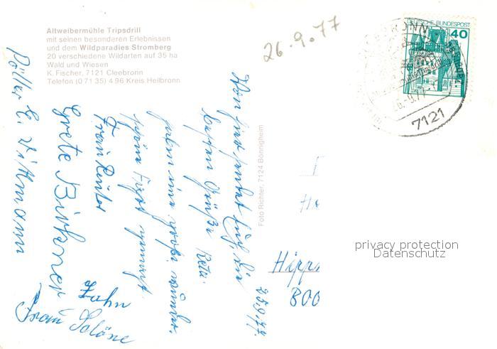 73071418 alte Postkarte Tripsdrill Cleebronn Kronenkraniche Trillarium Altmaennermuehle postalisch gelaufen Erhaltung siehe scans [NatalD47] KatCode: 11110008127059