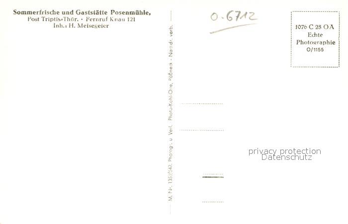 72982073 Triptis Gaststaette Posenmuehle postalisch nicht gelaufen Erhaltung siehe scans [WerneD78] KatCode: 11110016075116