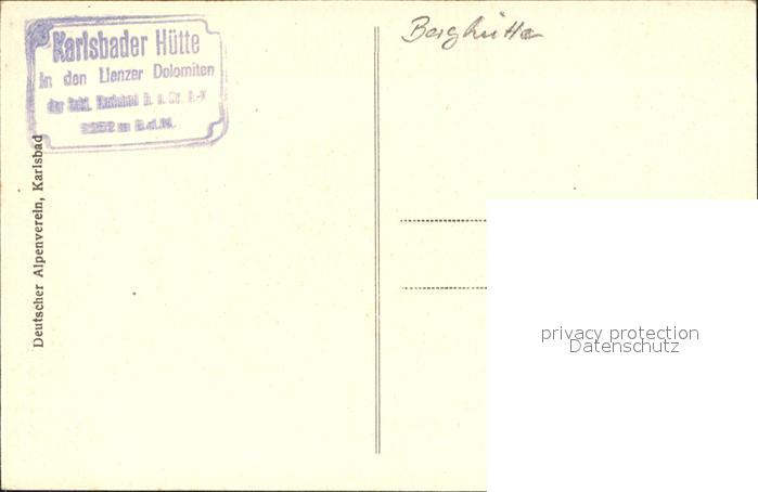 71566347 Tristach Karlsbader Huette im Laserz Kleiner Laserzsee Berghuette Alpenverein Lienzer Dolomiten postalisch nicht gelaufen Erhaltung siehe scans KatCode: 11390333070732