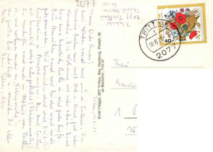 73871878 alte Postkarte Trittau Wohnsiedlung Hochhaeuser Parkanlagen postalisch gelaufen Erhaltung siehe scans [FriedD77] KatCode: 11110001062082