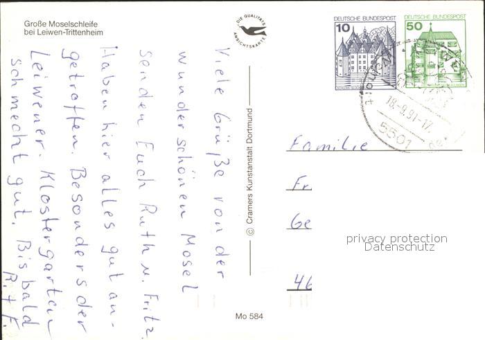 72213915 alte Postkarte Trittenheim Mosel Grosse Moselschleife Fliegeraufnahme postalisch gelaufen Erhaltung siehe scans KatCode: 11110007231207