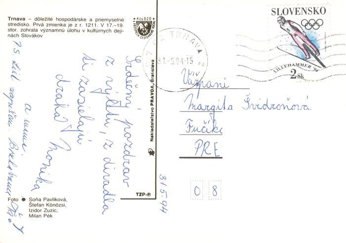 old postcard Trnava Slovakia Stadtansichten Zentrum Fussgaengerzone postalisch gelaufen Erhaltung siehe scans [FriedD77]