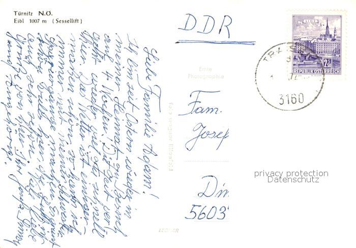 73522062 alte Postkarte T?rnitz Nieder?sterreich Eibl Sessellift postalisch gelaufen Erhaltung siehe scans [LiesaD40] KatCode: