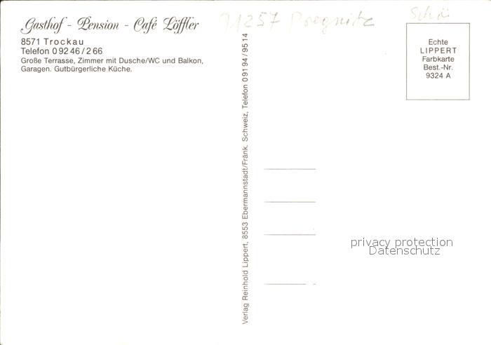 72142924 Trockau Pegnitz Gasthaus Pension Cafe Loeffler postalisch nicht gelaufen Erhaltung siehe scans KatCode: 11110009472175