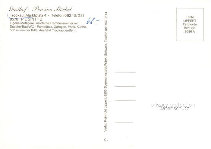 73864072 Trockau Pegnitz Gasthof Pension Stoeckel Gastraum Panorama Balkon postalisch nicht gelaufen Erhaltung siehe scans [WerneD78] KatCode: 11110009472175