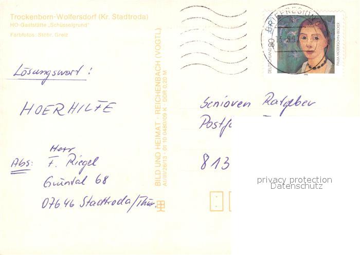 73570269 alte Postkarte Trockenborn-Wolfersdorf Gastst?tte Sch?sselgrund postalisch gelaufen Erhaltung siehe scans [PaolaD17] KatCode: 11110016074102