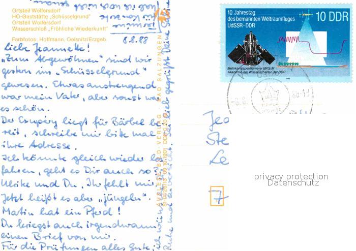 72627787 alte Postkarte Trockenborn-Wolfersdorf Teilansicht HOG Schluesselgrund Wasserschloss Froehliche Wiederkunft postalisch gelaufen Erhaltung siehe scans [WerneD78] KatCode: 11110016074102