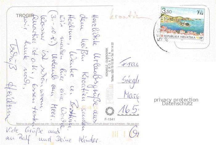 74142444 old postcard Trogir Trau Croatia Fliegeraufnahme postalisch gelaufen Erhaltung siehe scans [FriedD77] KatCode: 11260