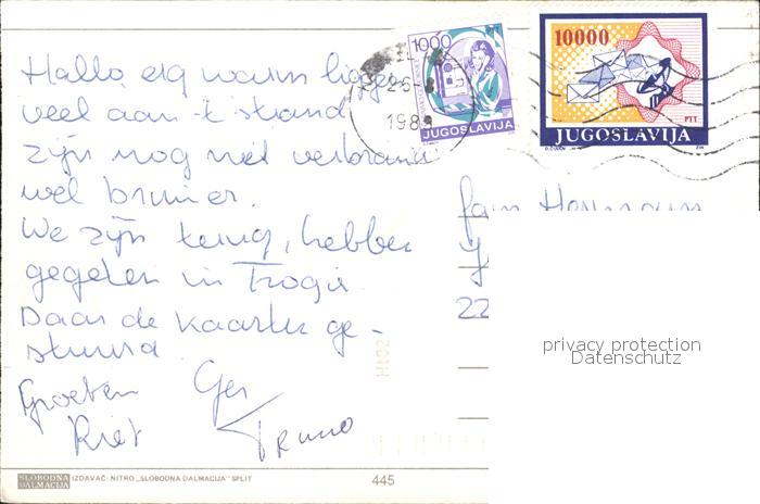 old postcard Trogir Trau Fliegeraufnahme Hafen postalisch gelaufen
