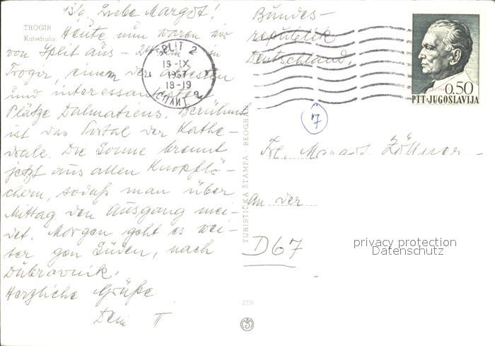 old postcard Trogir Trau Kathedrale postalisch gelaufen Erhaltung siehe scans
