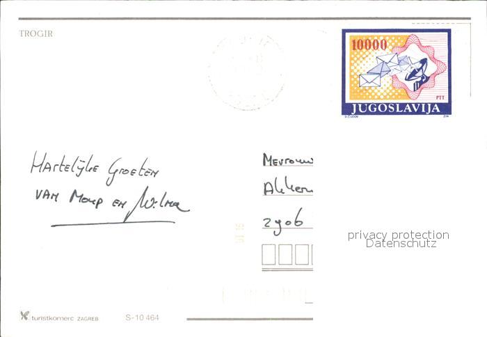 old postcard Trogir Trau Segelboote postalisch gelaufen